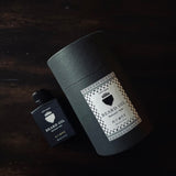 Contents: Includes 1 oz beard oil in glass bottle with euro cap and extra dropper. Pearwood pocket comb all packed in a muslin bag and reusable/recyclable cylinder gift box. Your choice of black or kraft gift box.